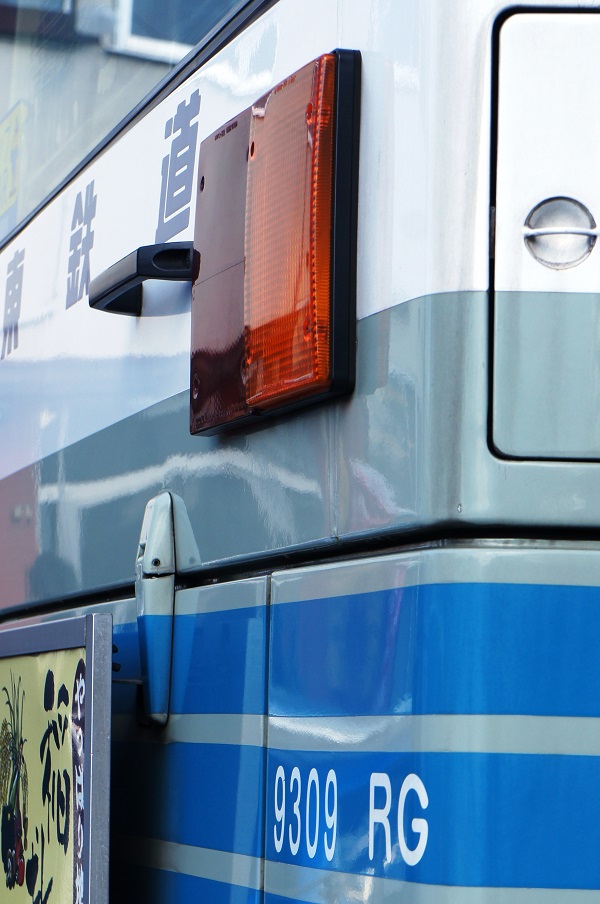 外装は、最近の京成中古ではお馴染みとなった青色デイライトを備え、窓枠は黒塗りですが、中扉の窓枠部だけ白塗りになっているのが個性的で、遠目にも車輌の判断がし易くなっています。また、フロント部の低床表記が、既述の自社発注車は赤文字であるのに対し、この9399RGは最近主流となった青三本の下の青磁色部に白文字で記す仕方である事も対比的になっています。