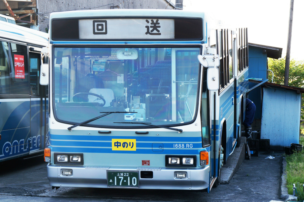 京成バスからやって来た車輌で、当時の社番は5193です。2015年に竜ヶ崎営業所初の大型ノンステップバスとして投入されました。