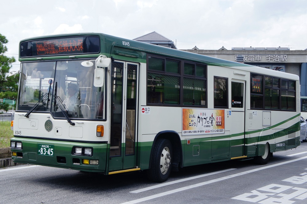 もと高槻市交通部の車輌です。2011年に投入されたこの車は、日野製の車輌を多く導入してきた当時の京阪宇治バスには珍しいいすゞLVとなっています。平成26年の京阪シティバスとの合併に合わせ、出口表記横にあった橙色の「KEIHAN UJI BUS」ロゴは剥がされました。
